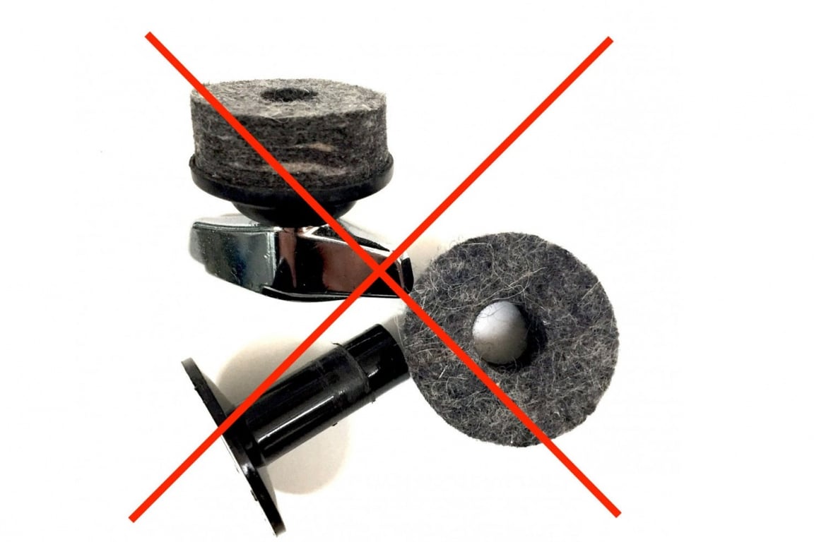 Dette er en genial liten dings fra ASBA. Du fester bare denne gummidingsen i hullet til cymbalen, så kan du glemme skruer, holdere, plater og filt :)