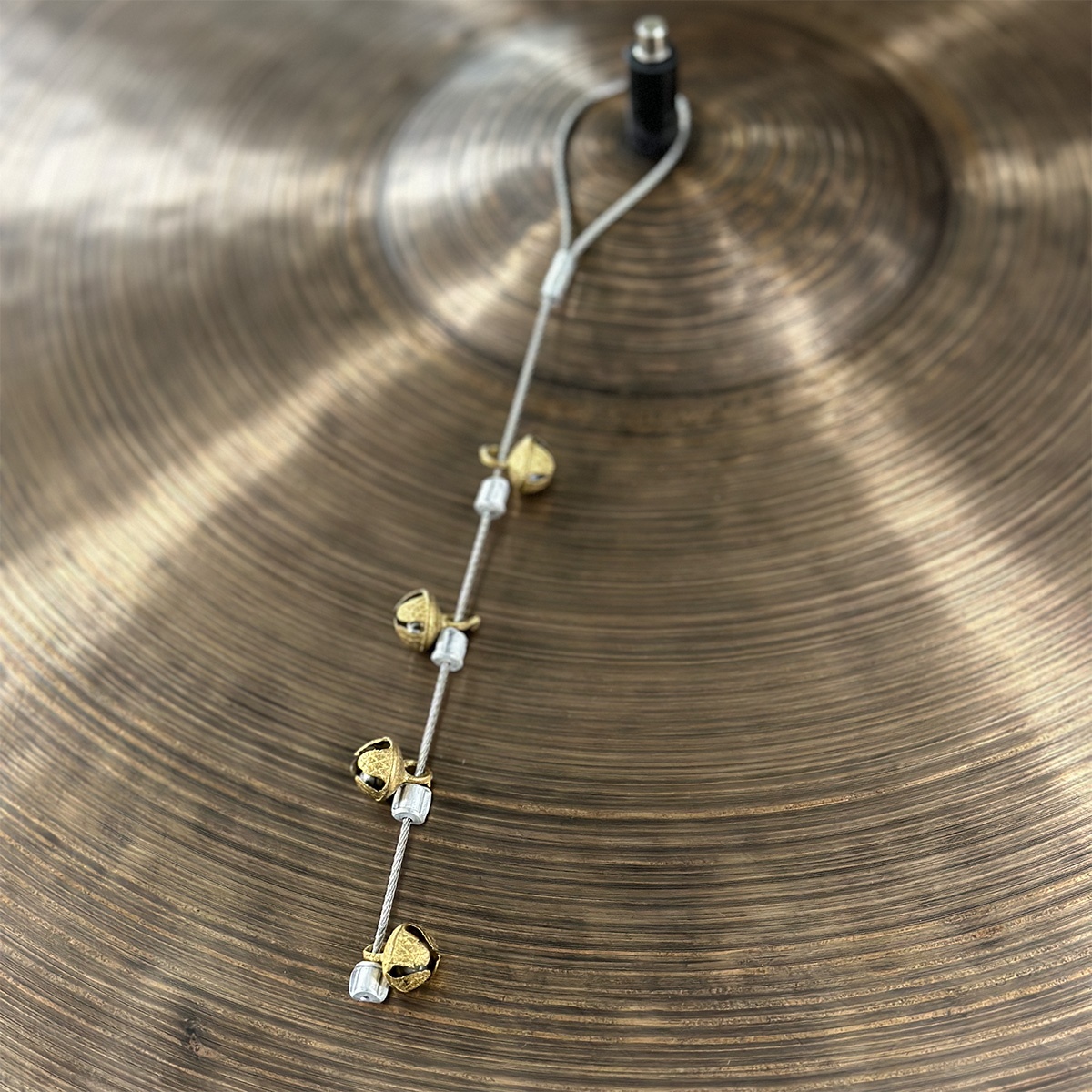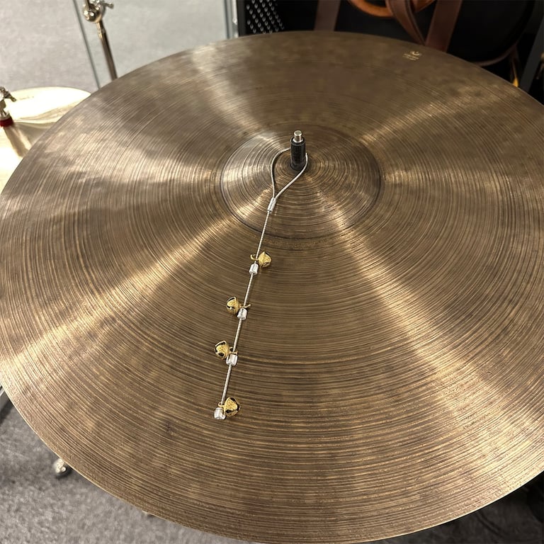 Sizzle Stick med påmonterte bells. Gir en veldig fin effekt, og funker også bra for å dempe cymbalen litt om du trenger lavere volum.