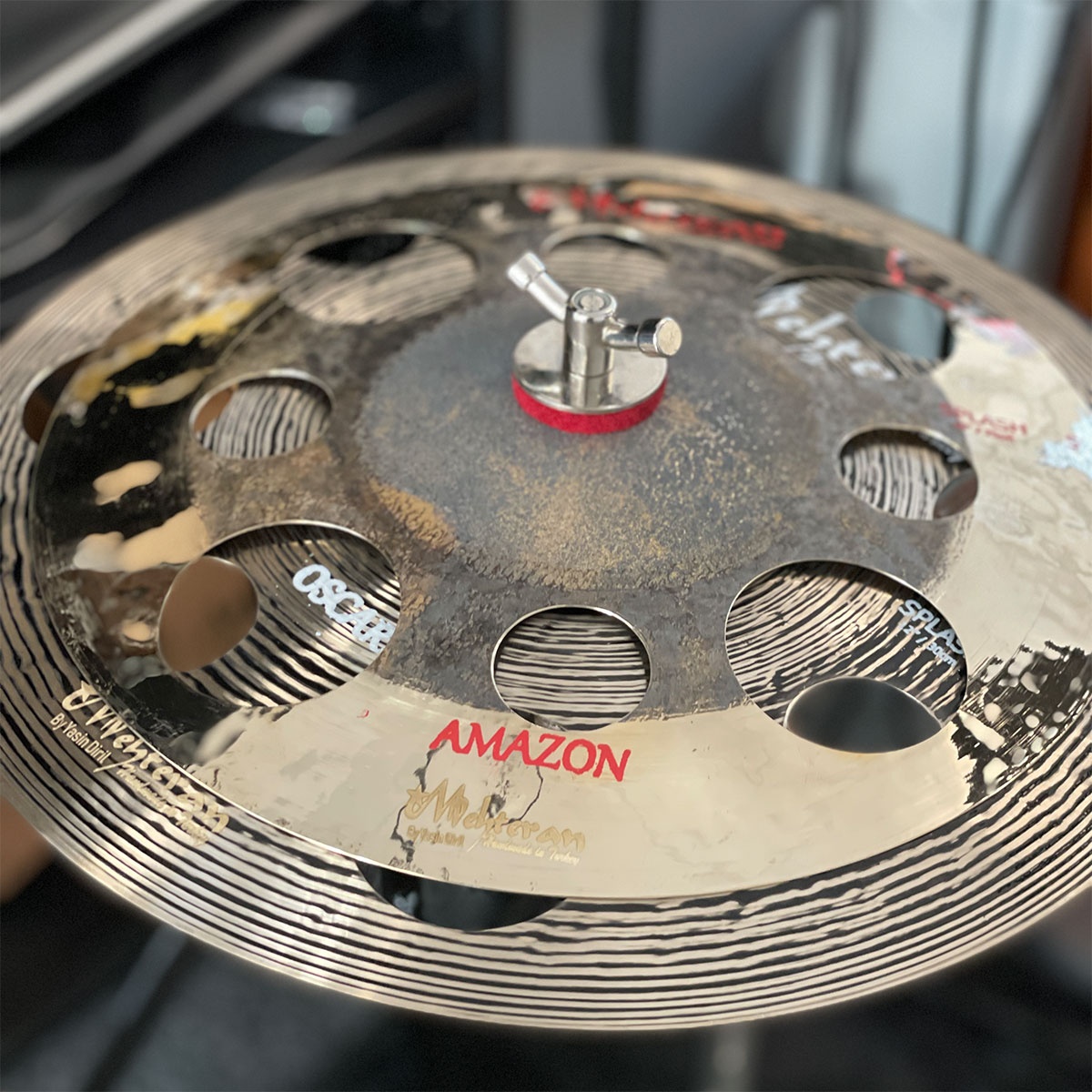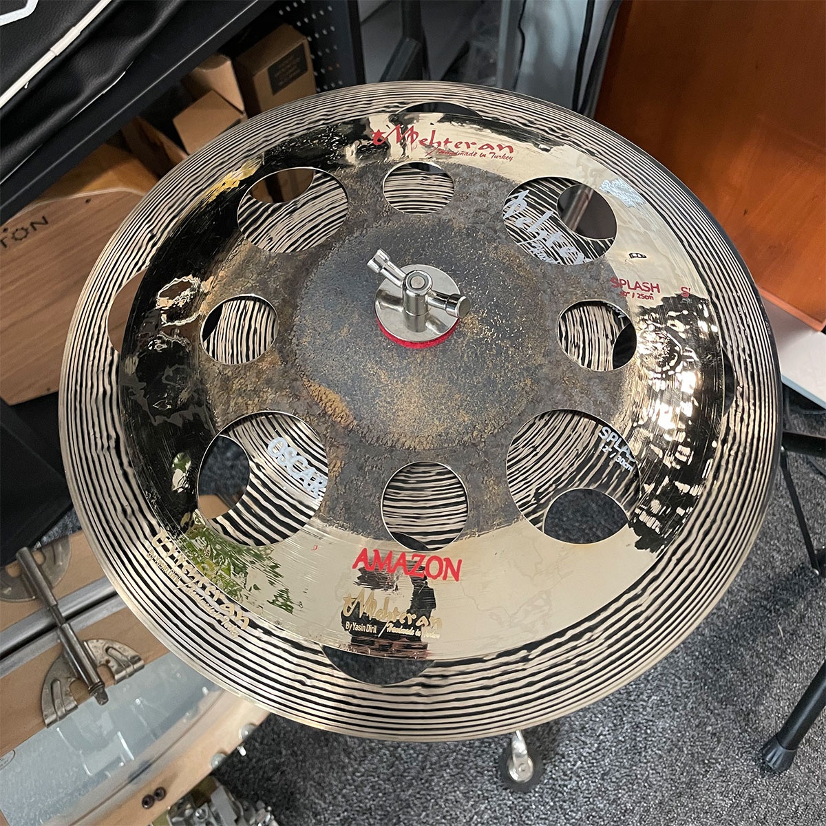 Dette er en stack med en 10" Amazon FX Splash over en 12" Oscar FX Splash. Ganske allsidig liten stack basert på hvor mye du strammer cymbalskruen.