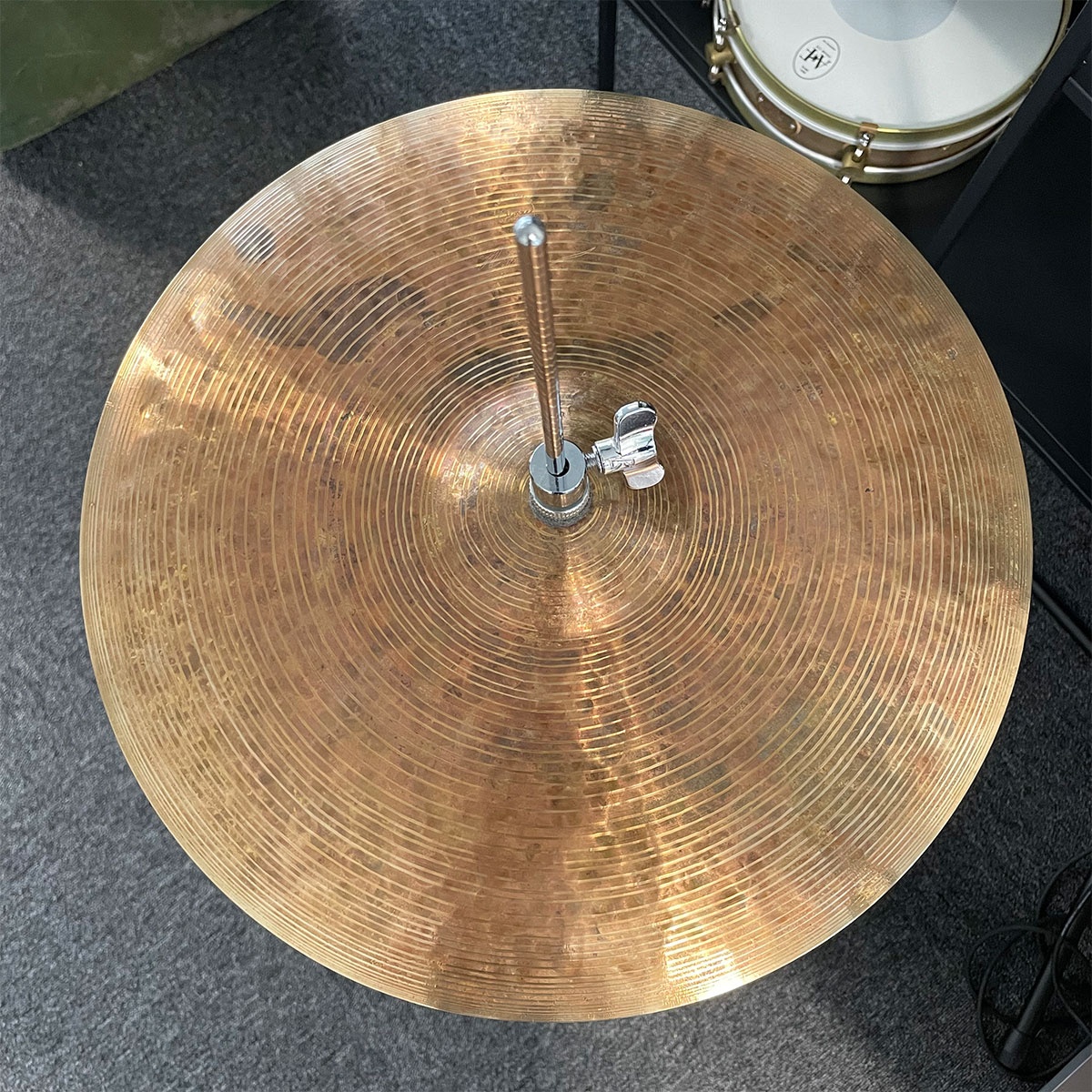 Dreid bunn og halveis dreid topp. Så ca. en kvart av cymbalen er fortsatt rå. Gir en tørrere cymbal med bedre stikkedefinisjon.