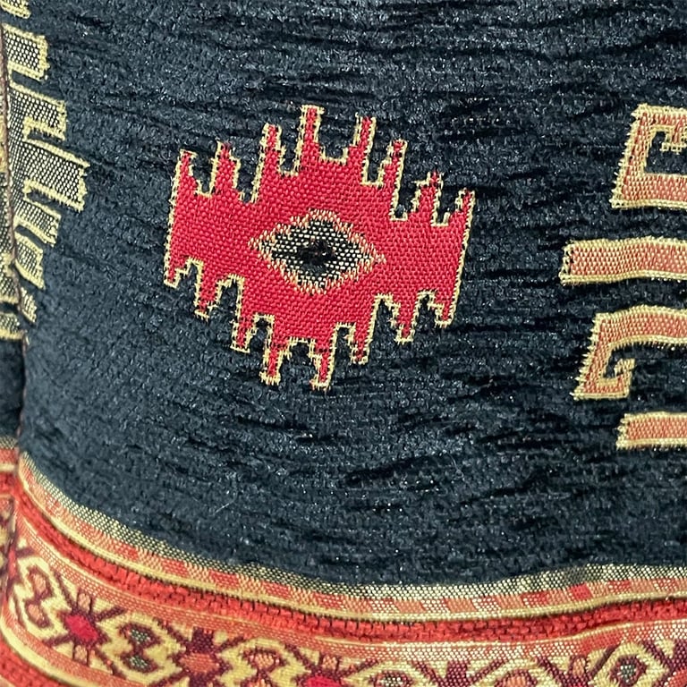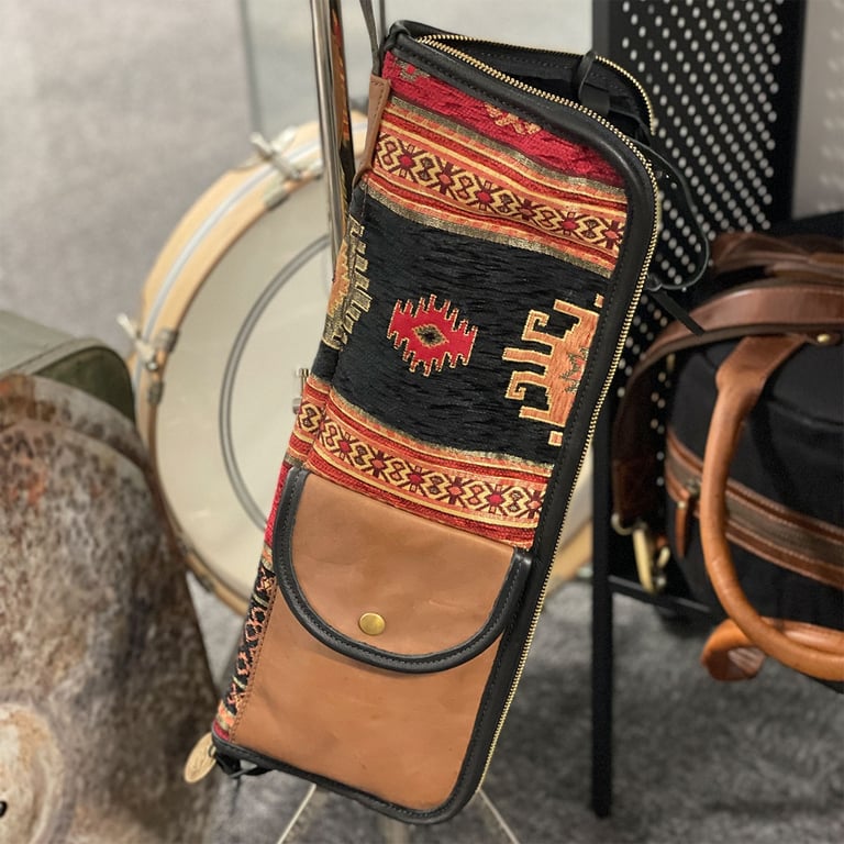 Nydelig håndlaget stikkebag av Tyrkisk Kilim teppe og lær. Produsert av Amiske salmakere. Denne er unik og kan ikke skaffes i nøyaktig samme utførelse.