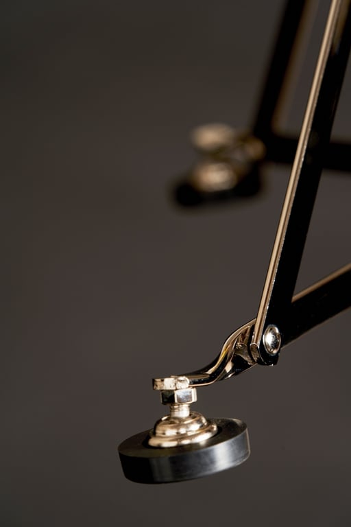 Laget av forniklet stål. Vi snakker kanskje om verdens fineste stativer :)