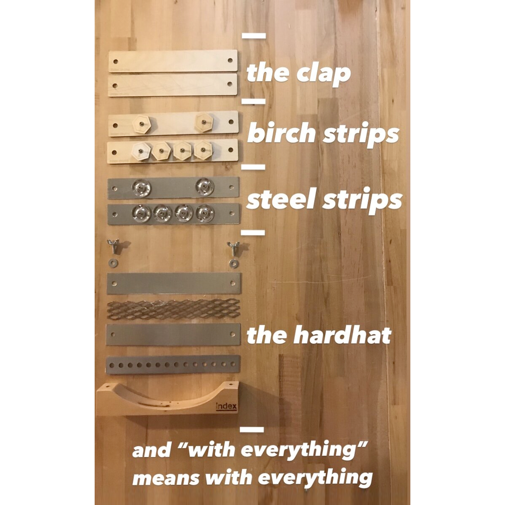 HardHat gir deg en lyd som ligner på en lukket hi-hat. Den er regulerbar, så du kan ha den så lukket eller løs som du vil. Det finns også andre "striper" du kan kjøpe til som gir en mer tamburinlignende lyd, enten i metall eller tre. Veldig kult instrument både som en effekt i et vanlig trommesett, eller som erstatning for hi-hat i et veldig nedstrippet oppsett. Kan festes både på cymbalstativ eller med woodblock holder.