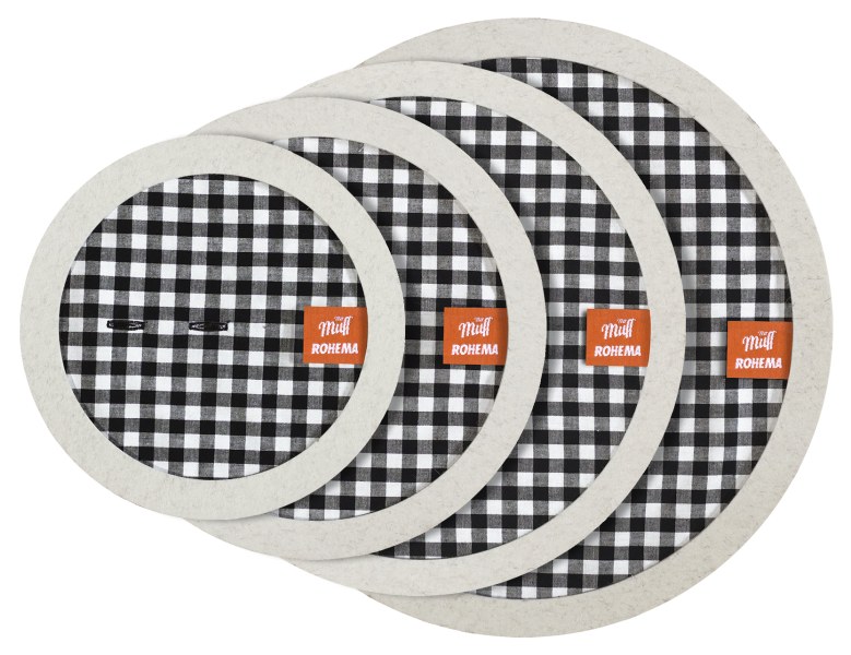Mr. Muff Muffins er løsningen! Ullfilt-ringen kombinert med bomullsstoff i 100 % bomull er perfekt tilpasset for å passe alle standard trommestørrelser. I tillegg kan alle Muffins stables oppå hverandre for å øke dempingen.