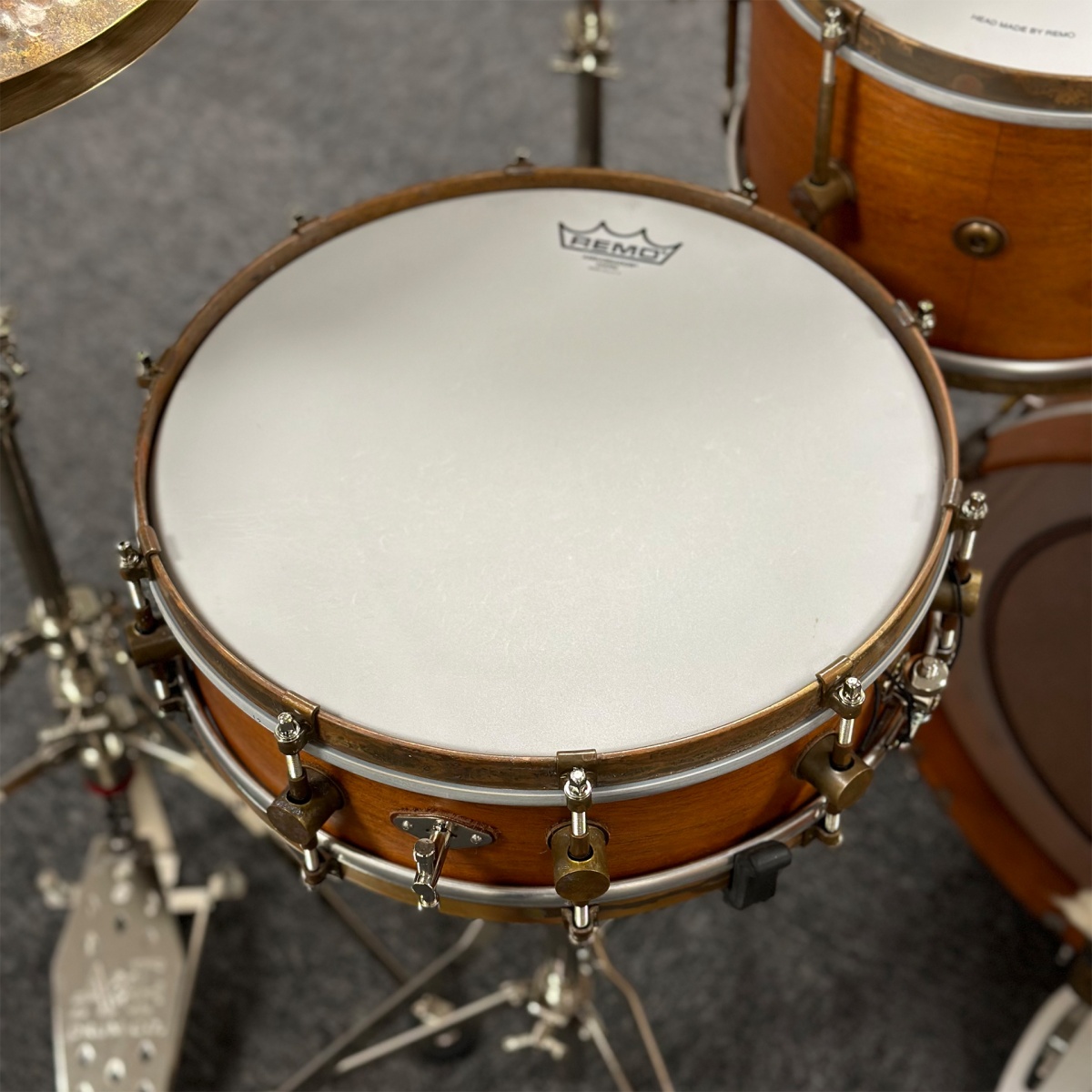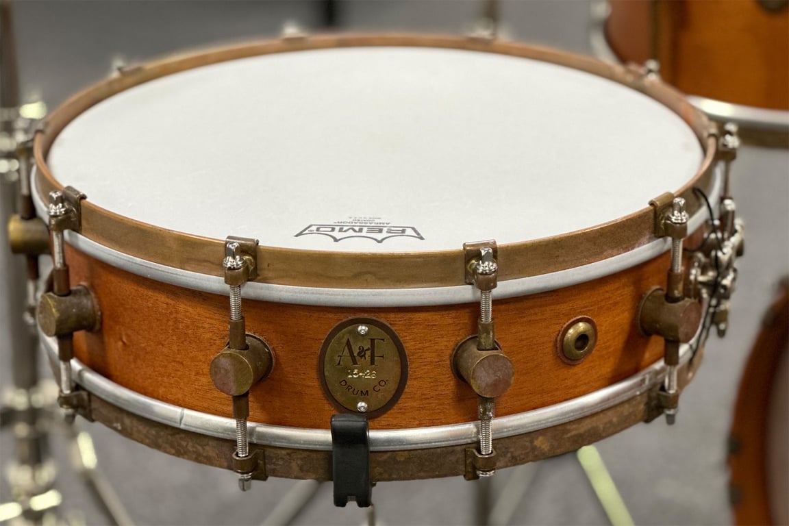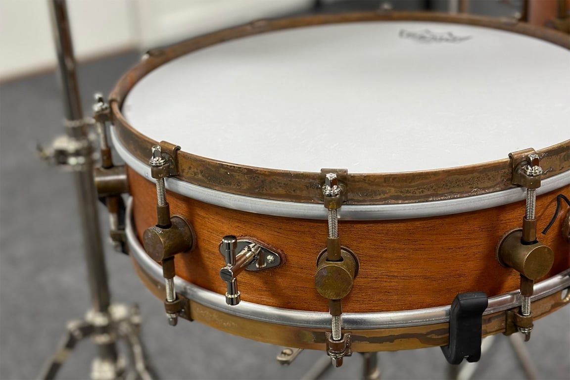 Natural Mahogany Club snare 14x4. Med ekstra intern seider, som gir flere lydmuligheter. Kan vris til både over- og under-skinn og brukes i kombinasjon med vanlig seider.