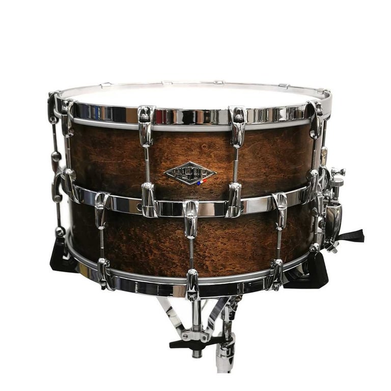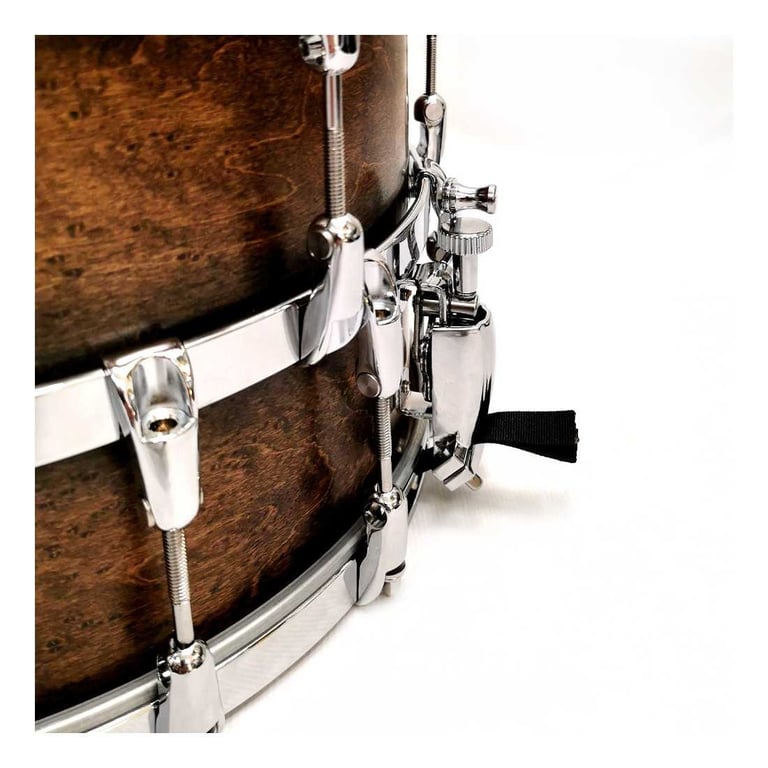Av og til ser vi nyskapende produkter, og denne skarptrommen kan fylle de fleste behov du skulle ha til forskjellige skarptrommer. Top Lug kan endre hvor mange lugs du bruker på over- og under-skinnet. Du kan ha f.eks 10 lugs, elller 6 lugs. Alt etter situasjon og hvilken lyd du er ute etter. Vi limer inn resten av beskrivelsen på engelsk og anbefaler videoen fra "Sounds like a drum" :) Dimensions :14x8 Shell: 3 ply Maple / Poplar / Maple Bearing edges: Reinforcement in Beech Badge: Exclusive John JR Robinson signature Drumheads: Asbahead Finish: Chocolate Snare wires: Brass, 20 wires, dual end plate with ASBA engraving Strainer: Chromed metal
